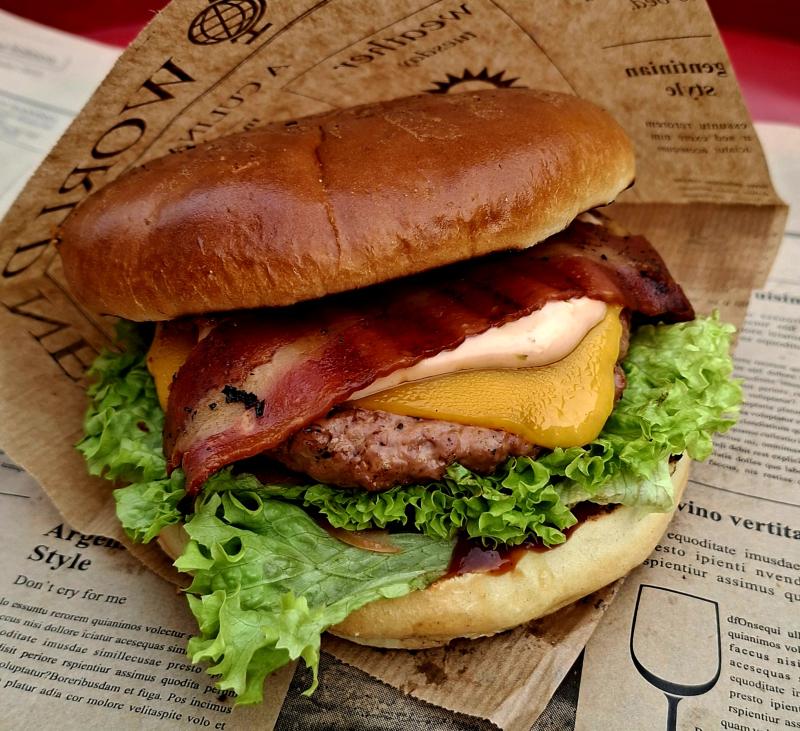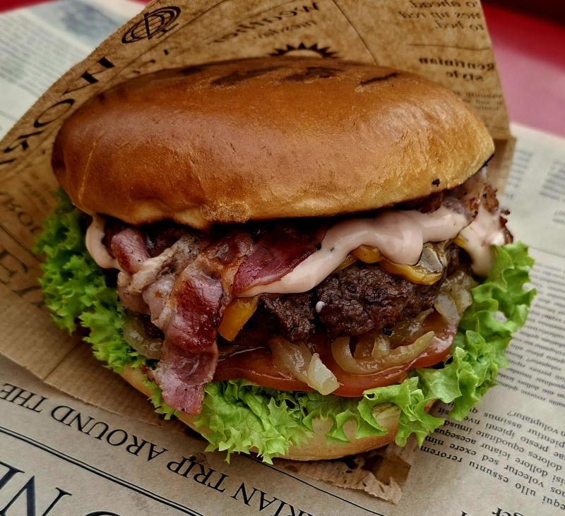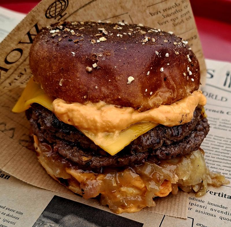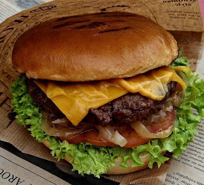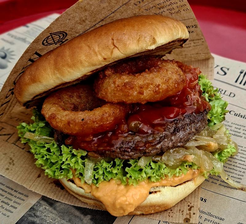 Brioche Bun l Beefpatty l Onion Rings l Cheesesauce l Salsa
