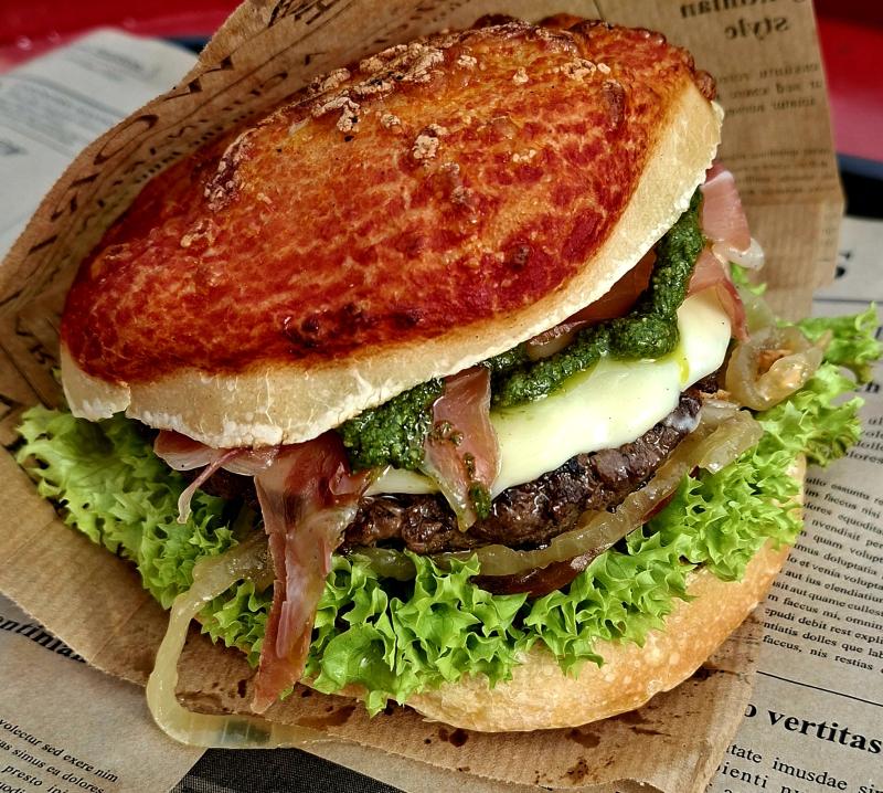 Pizza Bun l Beefpatty l Parmaschinken l Mozzarella l Pestosauce