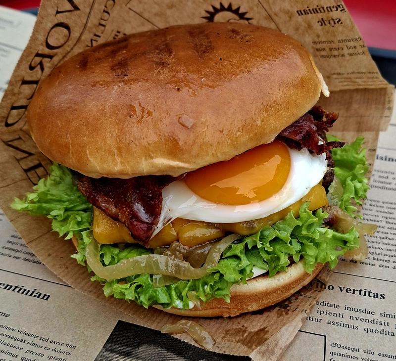 Brioche Bun l Beefpatty l Spiegelei l Bacon l Cheddar l white BBQ-Sauce