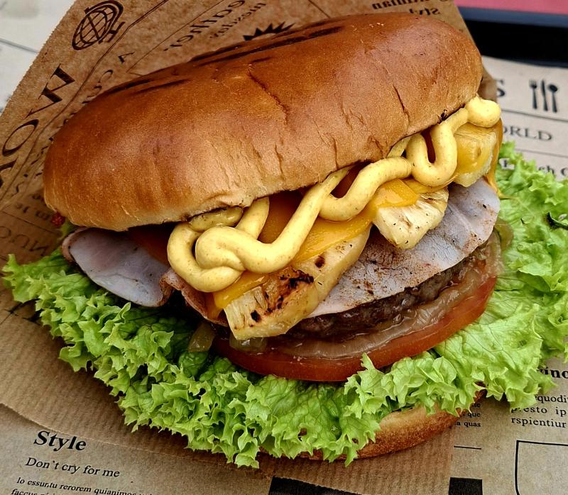 Brioche Bun l Beefpatty l Kochschinken l Ananas l Cheddar l Currysauce