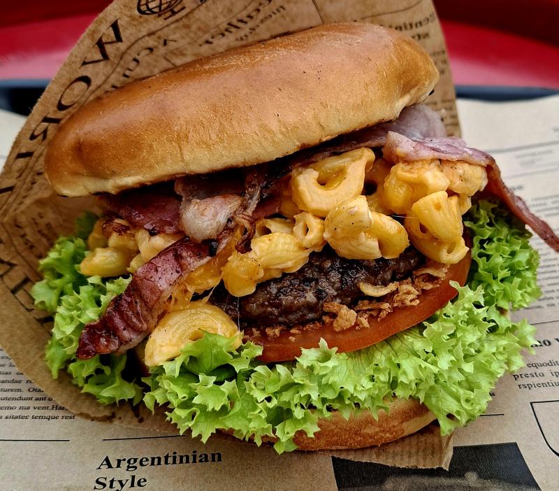 Brioche Bun l Beefpatty l homemade Käsemakkaroni l Bacon l Röstzwiebel